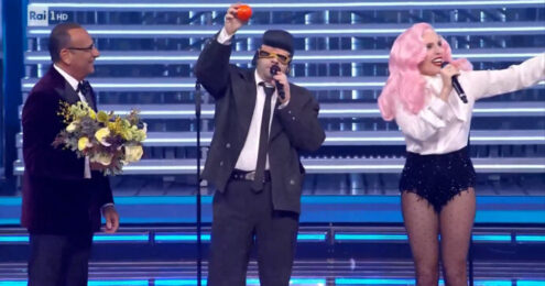 Tony ha mantenuto la promessa fatta sui social nel pomeriggio (“A Sanremo caco o non caco?”), posando simbolicamente un caco (il frutto, con tutto il suo doppio senso) sul palco dell’Ariston al termine della performance. Un gesto geniale, ironico e provocatorio che ha chiuso il cerchio: dalla domanda esistenziale shakespeariana al gesto concreto, trasformando un dubbio in un atto di libertà assoluta.