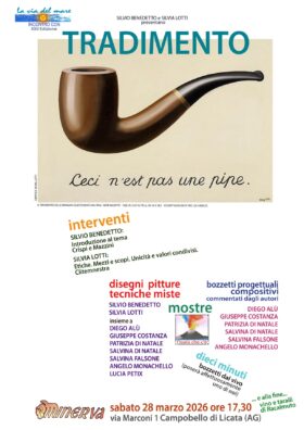 Campobello di Licata (AG) – Un incontro tra arte, filosofia e impegno civile: è questo il cuore di “Tradimento”, l’evento in programma sabato 28 marzo 2026 alle ore 17:30 presso Minerva, in via Marconi 1, nell’ambito della rassegna La via del mare – Incontro con XXII Edizione.