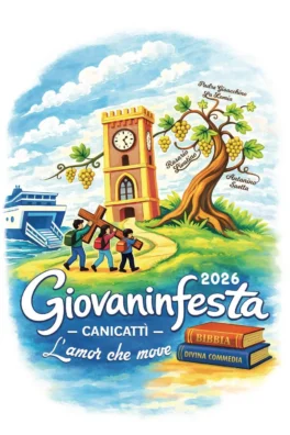 “L’Amor che move …” é questo il tema del GIF 2026 che si terrà giorno 1 Maggio a Canicatti. “Ci sono cammini che non finiscono mai, ma cambiano solo orizzonte. Il logo nasce proprio così: come un ponte tra il mare che abbiamo attraversato e la terra che ci accoglie. Tutto riparte da quel traghetto che ci riporta all’esperienza dell’anno scorso: da lì scendiamo noi giovani, stringendo tra le mani la croce ricevuta dalla comunità di Lampedusa, la stessa che San Giovanni Paolo II consegnò ai giovani di Agrigento nel 1993. È un cammino di fede che non si interrompe e che ci vede camminare verso la Torre dell’Orologio, simbolo della nostra Canicattì, che ci accoglie e ci ricorda che questo è il nostro “ora”: il tempo giusto per essere protagonisti”. Cosi racconta Rachele Messina che ha dato vita al logo della manifestazione. In questo percorso veniamo abbracciati dalla vite, orgoglio della nostra tradizione e richiamo vivo alle parole di Gesù: “Io sono la vite, voi i tralci”. In questo disegno i tralci sono proprio i nostri testimoni, Rosario Livatino, Antonio Saetta e Padre Gioacchino La Lomia, che con il loro esempio ci mostrano come restare uniti alla vera linfa della giustizia e della carità. Infine, continua ancora nella descrizione Rachele Messina, alla base di tutto, l’incontro tra la Bibbia e la Divina Commedia, racconta il cuore di questa edizione: “L’AMORE CHE MOVE”. Questo accostamento vuole essere un omaggio al reliquiario del beato Livatino, proprio come lui univa il Vangelo e il Codice Penale, noi oggi vogliamo poggiare il nostro futuro sulla Parola di Dio e sulla forza dell’Amore che muove l’universo. Questo logo è un invito a metterci in moto, con le radici ben piantate nella memoria e il cuore rivolto verso la speranza”, ha concluso Rachele.